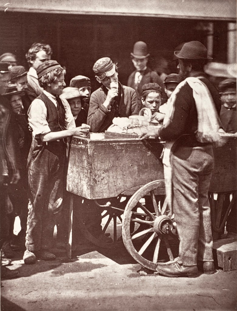 This, too, was a particular echo of the vanished world I had written about. There is a long and rich history of eating in the street. Today’s “restaurant streets” harken back both to mobile hawkers of penny loaves and pea soup (a reminder that the street could be a place of alluring as well as repulsive aromas) and to early initiatives to pull tables and chairs out onto fashionable streets when they were judged tolerably clean. The decline of street eating, driven in part by the conviction that it was unsanitary, has been countered in recent years by a fashion for “street food.” COVID has given that trend a sharp boost, now that the demands of hygiene offer an unexpected new incentive to linger and socialize on the street.