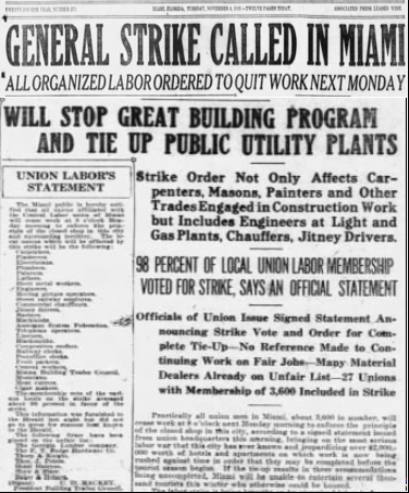 Much has yet to be written. The study of Miami’s class and labor history needs to account for the demographic realities of constant population circulation, labor competition, unstable labor market (seasonal work, low paying jobs), and recalcitrant employers unwilling to concede to greater worker power. Racism undeniably grew in this social petri dish. While questions of identity are certainly important, the archaeological site of Miami’s labor history and political economy has much still to offer for a greater understanding of how class operated and how capitalism evolved in such urban locations.