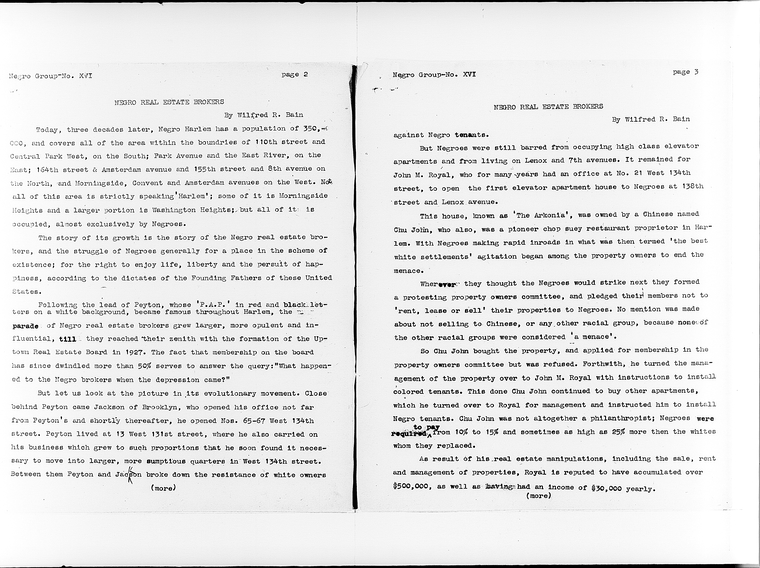 Between 1936 and 1941, the WPA Writer’s Program penned a study of New York City’s Black community. In a section on economic history, Wilfred R. Bain wrote an 1150-word entry on ‘Negro Real Estate Brokers’ that chronicled the careers, personalities, and networks of pioneering Black property intermediaries in what was arguably the world capital of real estate. He catalogued how Black brokers navigated the racism of white property owners and finance, opening Harlem, building by building, through shrewdness, luck, subterfuge, and strategy, to Black tenants and owners. Black brokers paid more and got less, and erected their own networks of patronage and exploitation in their struggle “for a place in the scheme of existence.” (They were excluded, of course, from the real estate boards and commercial fraternity of professional white brokers developing at the same time.)
