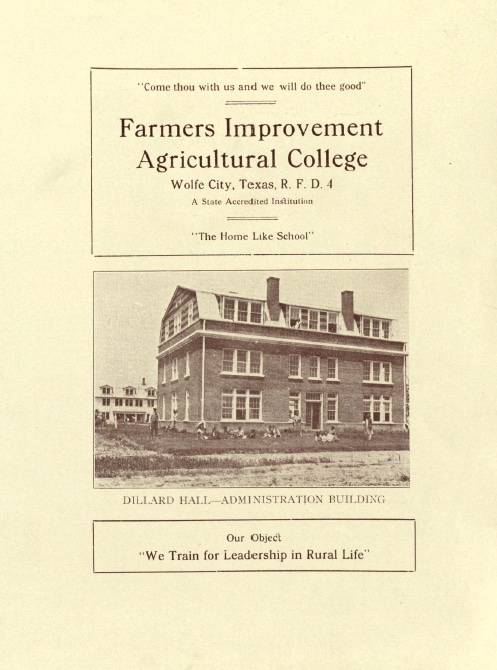 [7] “Farmers Improvement School Helpful in Training Negro Youth for Leadership in Rural Life; R.L. Smith Again at Helm,” The Wolf City Sun, Sept. 13, 1940.
