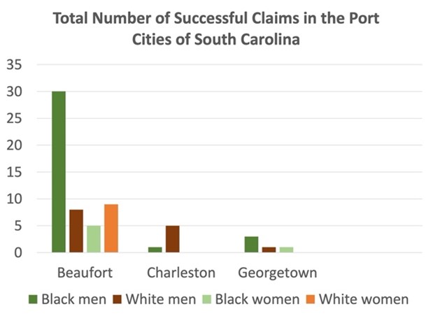 Twenty-three enslaved people and twelve free people of color made successful claims of property loss and Union loyalty in Beaufort. In the examination of the sixty-four claims from the port cities of Beaufort, Georgetown, and Charleston, I found a significant, albeit small, emerging middle class among the enslaved population in the wealthiest counties in South Carolina. Enslaved people in port cities like Beaufort, where a Black majority existed from 1730 to 1960, experienced unusual degrees of mobility due to their demographic advantage and proximity to riverine networks, morasses, and the Atlantic Coast. While this essay has focused on Rose Goethe’s postbellum property claim in Beaufort, and more broadly in other port cities of South Carolina, her dictum, “they cleaned me out entirely,” stands in as a representation of the unvisited and forgotten experience of thousands of former slaves who lost all their belongings in the same moment they gained birthright citizenship.