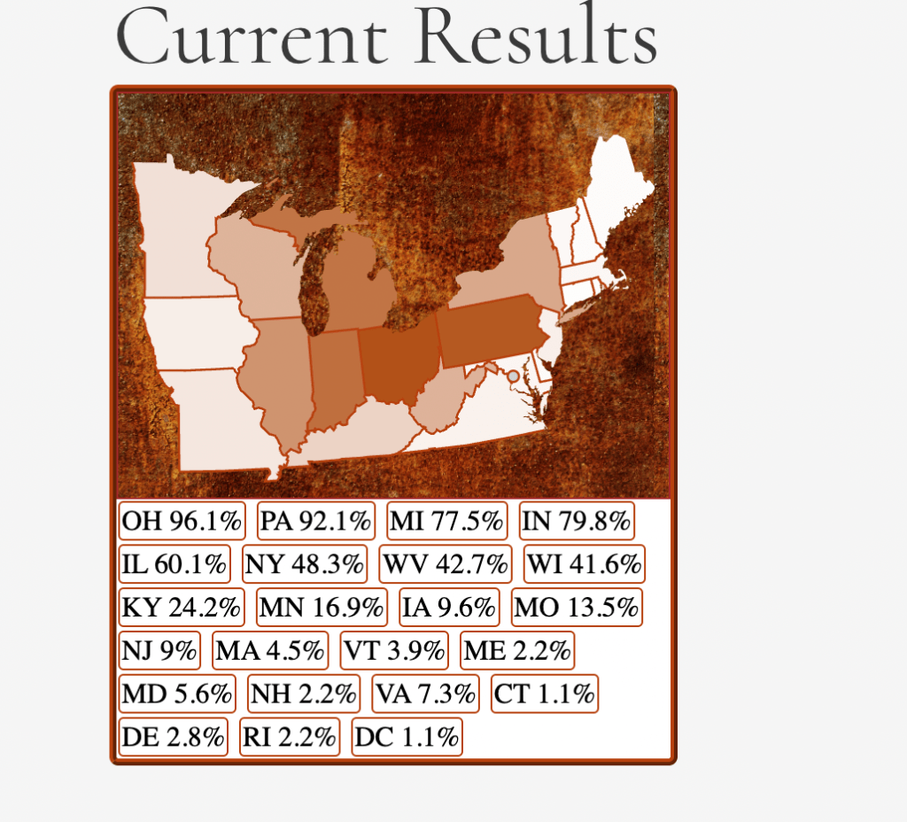 We continued the experiment on our institute’s webpage, generating an interactive map that polled visitors: “Which states contain the Rust Belt?” While we are far from reaching a consensus about which states belong in the region, one thing is clear: Ohio is at the heart of it all. Of all individuals who submitted responses, 96 percent agreed that our state firmly anchors the region. Cleveland serves as a lab—standing in as the prototypical Rust Belt city—and allows our students to think through a region that has been largely overlooked and neglected in the national sphere. We uplift their voices and push them to see value and meaning in a regional identity that has long been disparaged.