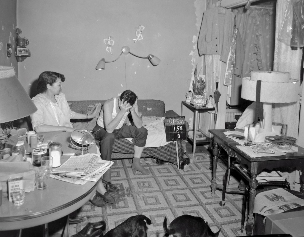 Albany, NY, was the first of four cities we started researching. (The other three are Newburgh, Kingston, and New York, NY.) Albany was the site of the enormous state-funded redevelopment project, the Empire State Plaza. There are three historians on the Picturing Urban Renewal team: David Hochfelder and Ann Pfau, both of whom live in Albany, and Stacy Sewell, who grew up there. In the New York State archives, we discovered a vast cache of photographic negatives taken by the State in order to compensate property owners and the more than 7,000 people displaced. The photos, from the early 1960s, were fascinating. Unlike most such collections, they included interiors as well as exteriors. Some featured portraits of the occupants, with their families and furnishings.