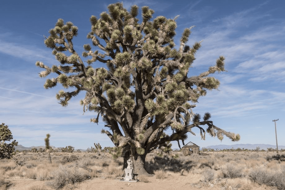 Some, like the parcel Edward Wall homesteaded in the 1950s, are now for private sale.[25] Once bought and refurbished, old jackrabbit homesteads often end up on the short-term rental market, advertised on websites like Vrbo and Airbnb. The area around Joshua Tree has seen an explosion of short-term rentals since 2019; a recent article in the New York Times estimated the number at over 1,800. Residents complain that the influx has inflated the local housing market and encouraged raucous parties attended by outsiders who, while drunk, litter and trespass. They also fear that the constant flow of people poses a threat to the iconic and already endangered Joshua trees, forty percent of which are now growing on private land.[26]