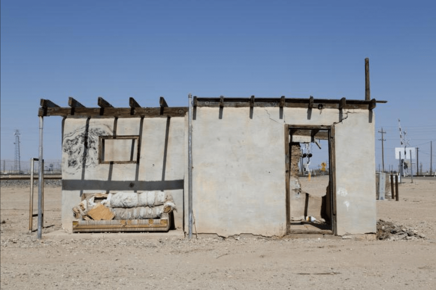 This legacy of abandoned shacks speaks to the environmental consequences of frenzied development. Throughout the world, rapid and poorly planned expansion into arid spaces has exacerbated issues like deforestation and desertification.[24] Nature’s return to the homesteaded areas of the Mojave Desert has been slow; the five-acre grids are still noticeable on satellite views, as are the footpaths homesteaders wore into the sand as they visited their neighbors.