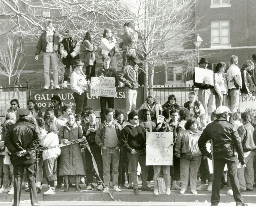 In 1988 the university was looking for a new president, and many in the Deaf community were advocating for a Deaf person to be named. But then the Board announced that a hearing person had been selected.