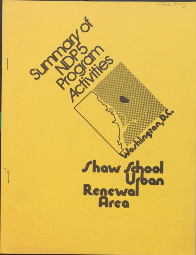 [3] Peter Braestrup, “Fletcher: Riot Area Rebuilding on Target,” Washington Post, April 13, 1969; George Day, “Urban Renewal: A Slow, Painful Process,” Washington Post, July 2, 1969; “Status Report: First Action Year,” box 26, folder 1: “Report, First Action Year, c. 1968,” Walter Fauntroy Papers; “The Shaw Urban Renewal Area Urban Renewal Plan and Annual Action Program,” box 27, folder 4: “Plan, the Shaw Urban Renewal Area, c. 1969,” Walter Fauntroy Papers.