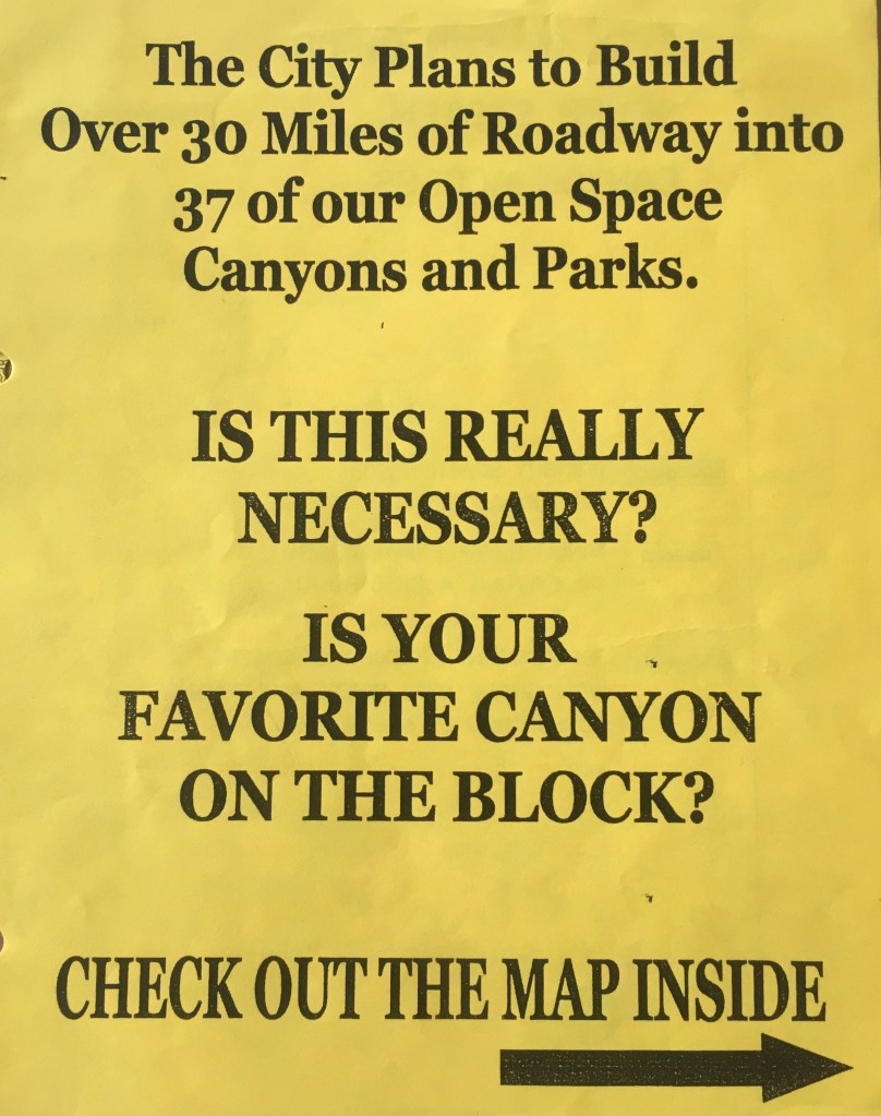 At the turn of the millennium, new movements for urban nature blossomed around the United States, bringing together the separate tracks of twentieth-century environmentalism—focused around conservation and justice—more fully than before.[24] San Diego continued to play an influential role. In the early 2000s, a grassroots campaign for nearby nature surged through the city, mobilizing around urban places as important human and ecological spaces. Ignited by municipal plans to pave sewer access roads through three dozen neighborhood canyons and bolstered by passage of the MSCP, the movement united community and environmental activists across the city’s canyon topography.