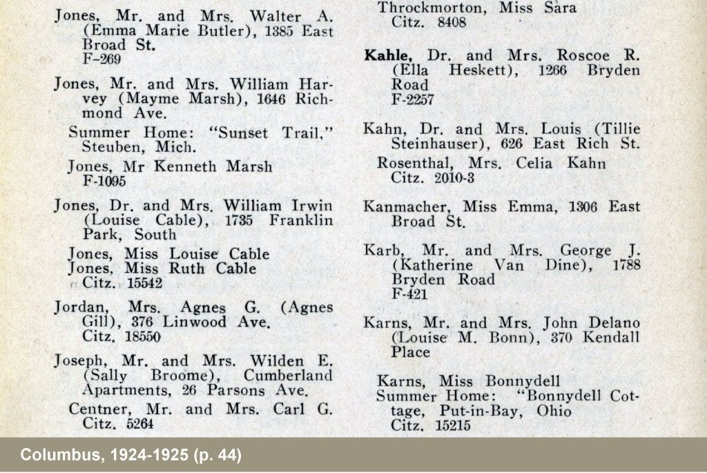 In addition to directory listings noting whether a household maintained a summer residence, the society pages of local newspapers also ran announcements about the travel plans of residents. “Mr. and Mrs. James Edward Elliott and their granddaughter, Jane Elliott Stribling, 1040 Franklin Avenue, left Thursday for their summer home at Topinabee, Michigan,” read the society page of The Columbus Dispatch on July 10, 1910. The Elliott household wanted their social network to know they’d be out of town over the summer—not just vacationing but staying at “their summer home” in picturesque northern Michigan, about 400 miles north of Columbus. The Elliott family made this same announcement almost every year, through at least 1926.