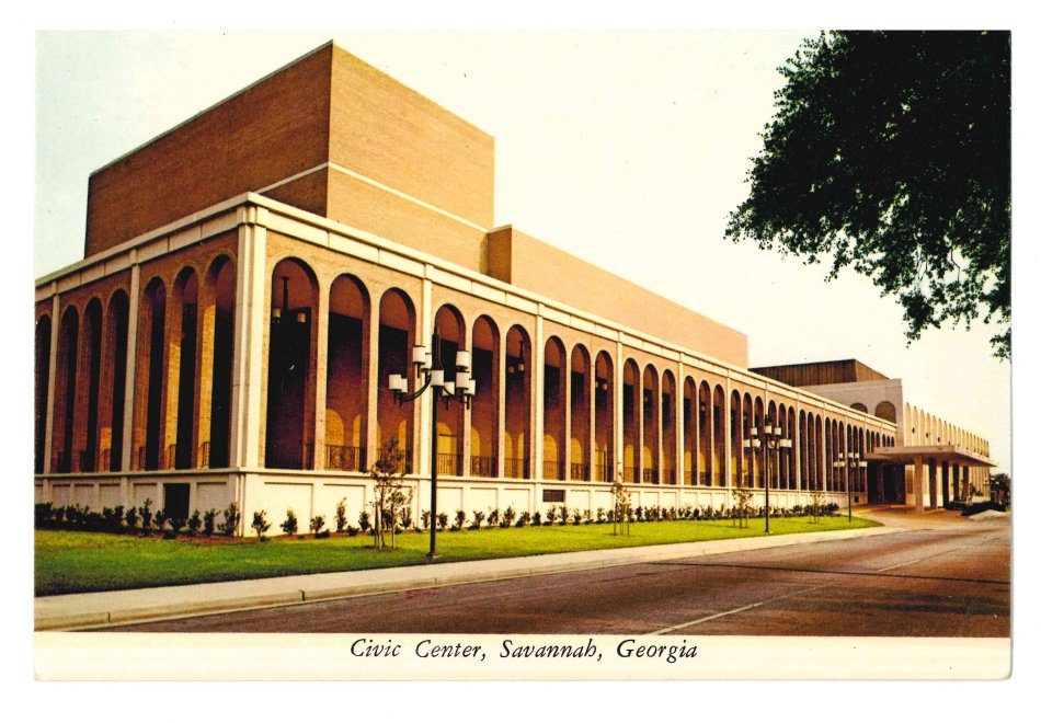 Postcard caption: “The Southeast’s newest and finest facility for sports, conventions and trade shows. “Civic Center,” Palumbo collection of Savannah-area materials, Item 1121-070_0672. Courtesy of City of Savannah Municipal Archives