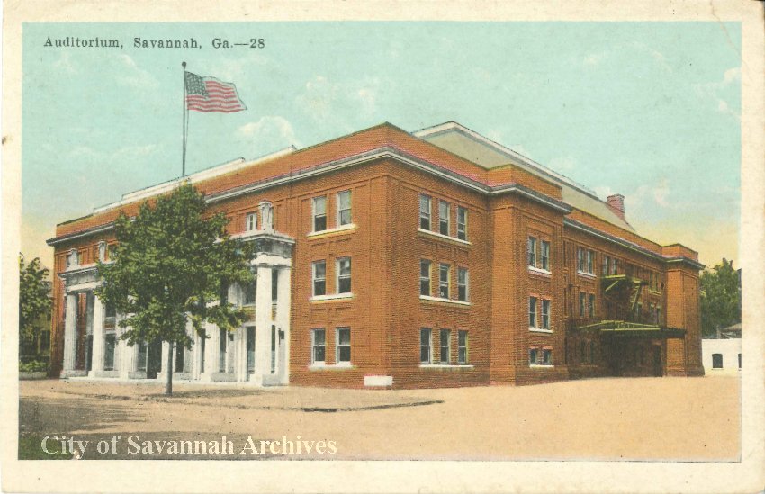 The Municipal Auditorium, built in 1916 and demolished in 1971. “Auditorium, Savannah, Ga.,” V. & J. Duncan Postcard Collection, Item 1121-057_0072. Courtesy of City of Savannah Municipal Archives