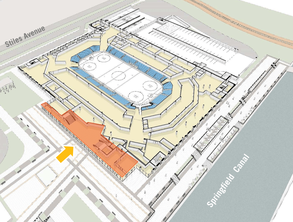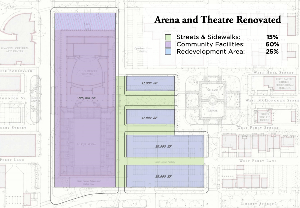 Sottile Option 1: Arena and Theatre Renovated. “Savannah Civic Legacy; Planning for the Civic Center & Restoration of Elbert & Jackson Wards,” prepared for City Council Meeting, May 23, 2024. Courtesy of the City of Savannah.