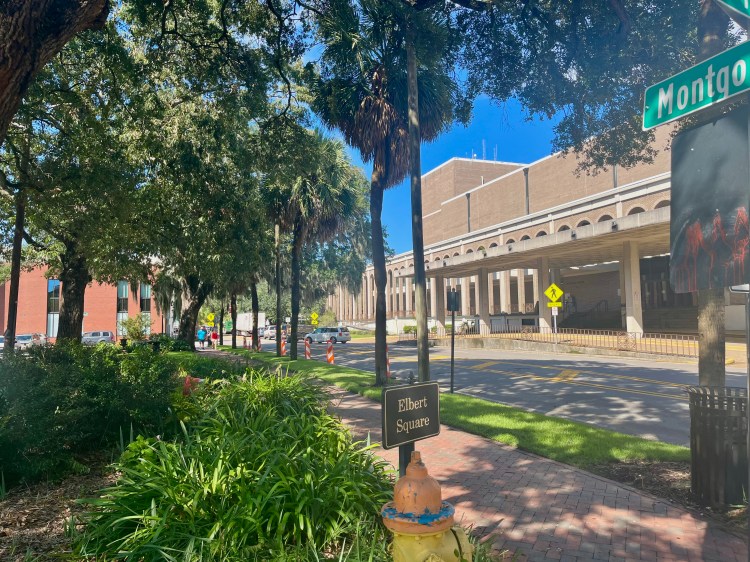 The square that is at the heart of this debate is Elbert Square, currently a mere strip of green along a wide road to the west of the Civic Center. Upon its opening in 1972, the Savannah Civic Center was meant to be an all-purpose venue where people could socially bond through concerts, sporting events, and conventions. Built on a seven-acre site where the Municipal Auditorium had previously stood, the new facility reflected the general style and goals of the 1960s: New Formalist architecture with wide, open spaces (some might say with little functional purpose) and enormous parking lots. The behemoth of a complex, smack dab in the middle of the western part of Savannah’s Historic District, was always intended as a functional memorial: named after two community giants (civil rights icon Martin Luther King Jr. and legendary composer/songwriter Johnny Mercer), the buildings were purpose-built to generate new community memories. Today, the site includes the 9,700-seat Martin Luther King Jr. Arena and a 2,500-seat Johnny Mercer Theatre, as well as ballrooms and multipurpose rooms for gathering. In its golden era, the Civic Center hosted musicians like Elton John, Bruce Springsteen, and Elvis Presley.