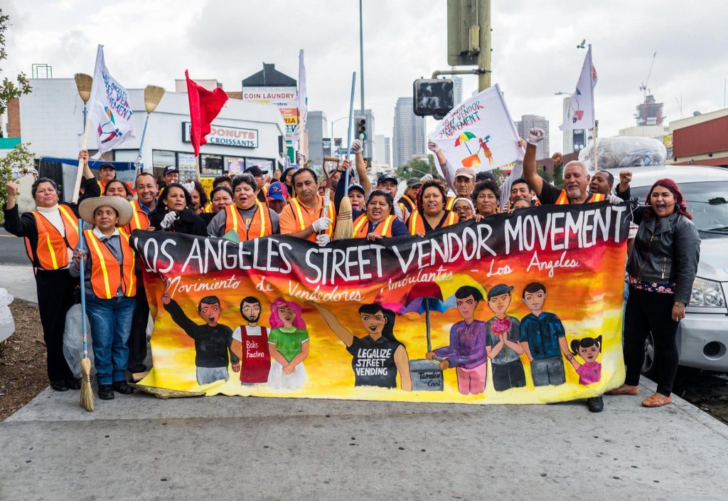 By demanding the right to work and earn a living, street vendors continue to stake a claim on L.A.’s global economy. In 1988, Father Luis Olivares responded to the LAPD’s escalating crackdown on vendors with a letter to the Los Angeles Times. The priest forcefully rejected the idea that unlicensed vending threatened public order. “Perfect order,” he countered, “demands that as a society we respond to the poor, the homeless, and yes the undocumented, not by getting rid of them but by creatively seeking ways to aid them.”[19] While challenging the forces of criminalization, Olivares also offered an alternative to the defense of street vendors as small business owners shut out from the free market. Here, instead, was a vision of a radically different Los Angeles: a future that was both global and just—a “world city” that worked, and that worked for everyone.