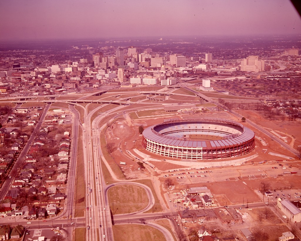 One context certainly not shared by all cities from which urban rebellion sprang during the 1960s was the disruption caused by the construction of massive stadiums, arenas, and athletic complexes dedicated to the consumption of sports. The intersection where Officer Harris shot Prather and at which residents gathered in protest sat four blocks south of Atlanta Stadium, just beyond the southern edge of its expansive surface parking, capable at the time of hosting 4,000 vehicles. During the rebellion, hundreds of Georgia state troopers occupied the stadium’s tunnels and adjacent lots awaiting orders to assist APD in bringing “rioters” to heel.[8]