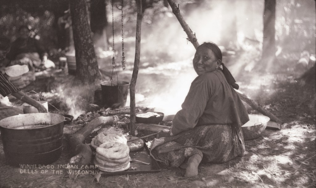 Other tribesmen performed along the riverbank for passing tour boats. Over time, this practice evolved into the formalized Stand Rock ceremony, which ran from 1919 to 1997. For a while, the Ho-Chunk even ran “Indian camps” as a living display of indigenous culture, a kind of Colonial Williamsburg walking visitors through daily tasks and traditional clothing and cooking styles. Some elders even led their own river boat tours.[15]