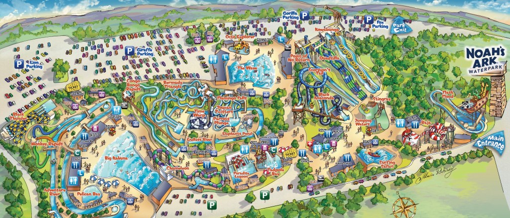 Map illustration by Maria Rabinky. Courtesy of Noah’s Ark Waterpark.