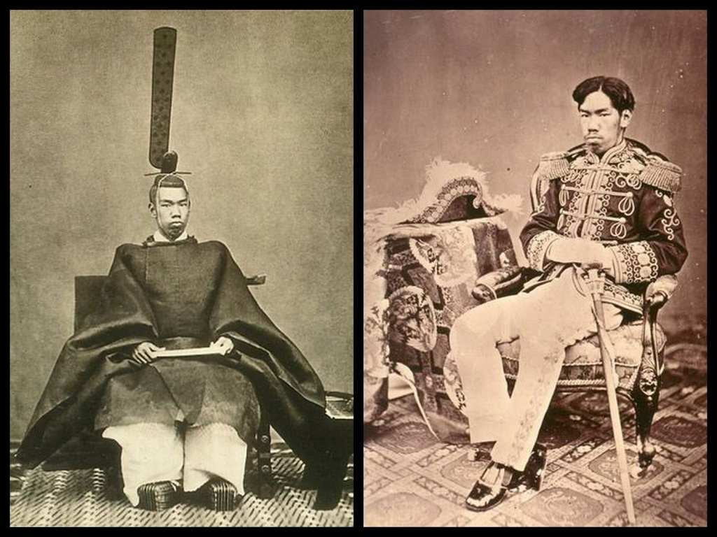 1872 and 1873 official portraits of Emperor Meiji, taken by Uchida Kuichi (the only photographer permitted by the Imperial Household Agency). Courtesy of The Metropolitan Museum of Art.