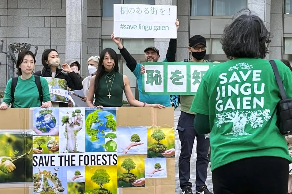 An April 2023 protest in front of Tokyo Metropolitan Government Building against the decision to raze certain areas to make way for high-rise towers. Photo courtesy of Associated Press.